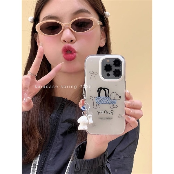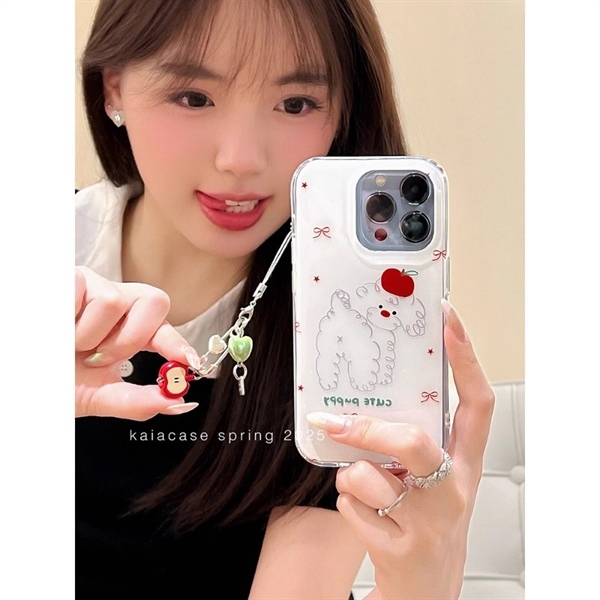 Case Trắng Cute Puppy Nơ Đỏ + Dây - 15